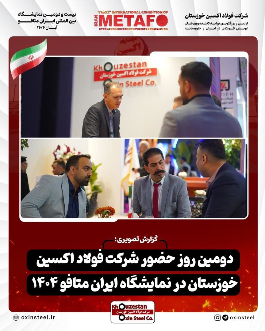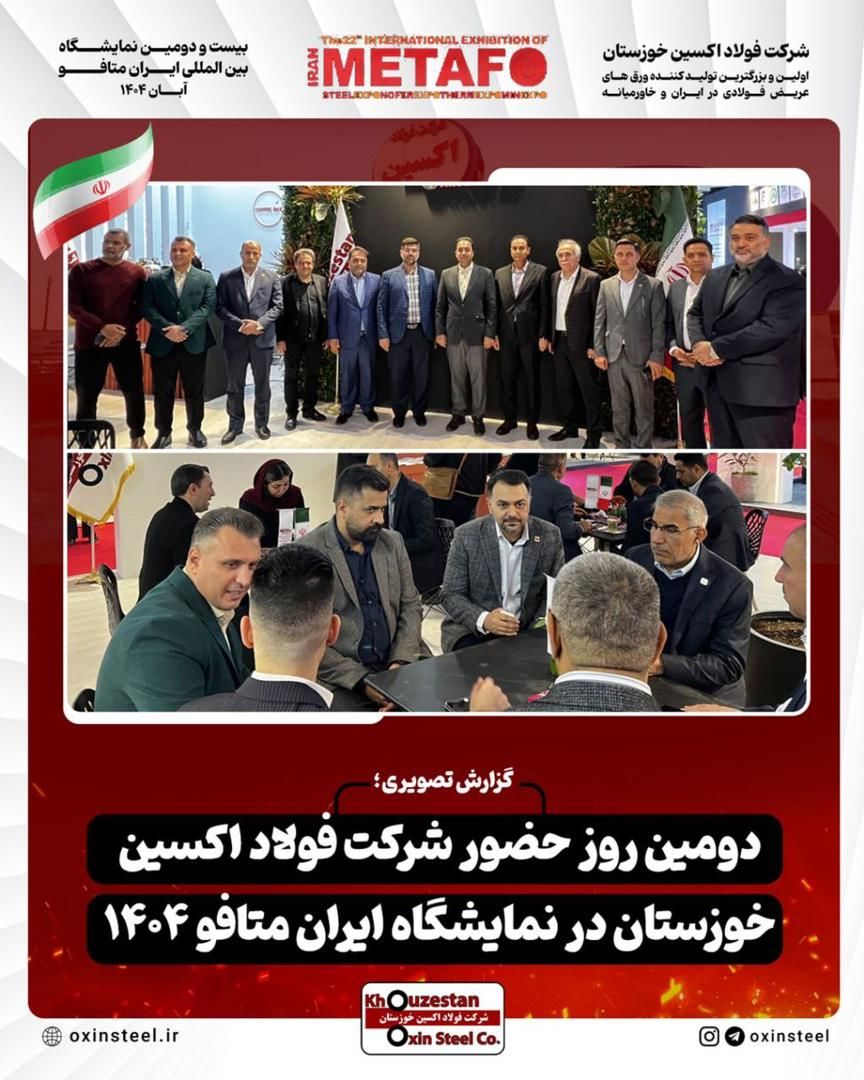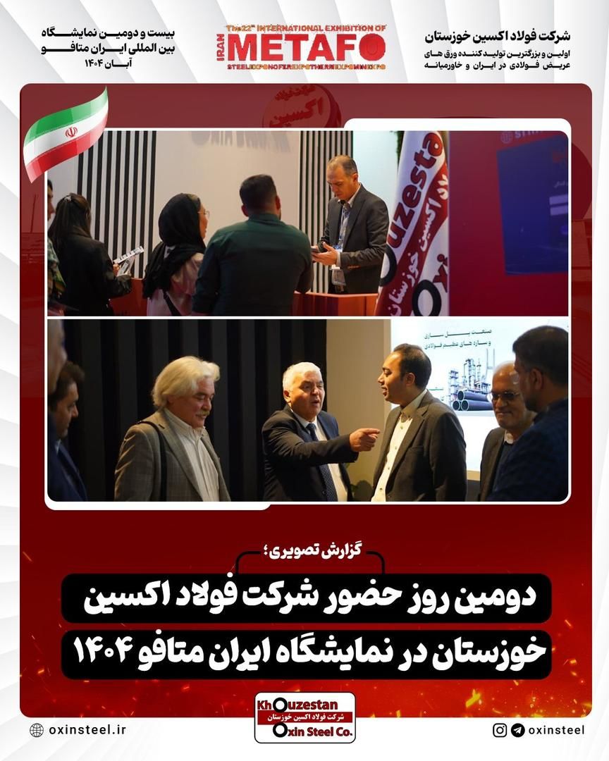 دنیای معدن: گزارش تصویری از دومین روز فعالیت غرفه شرکت فولاد اکسین خوزستان در نمایشگاه ایران متافو ۱۴۰۴