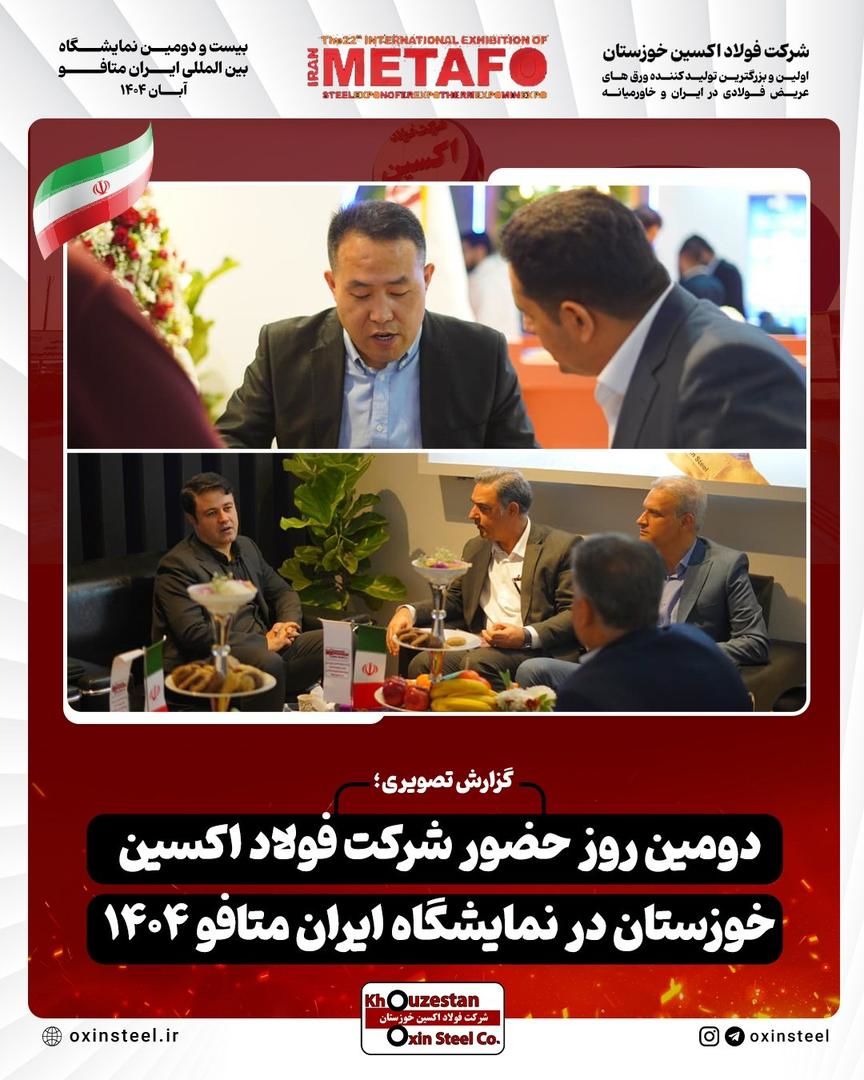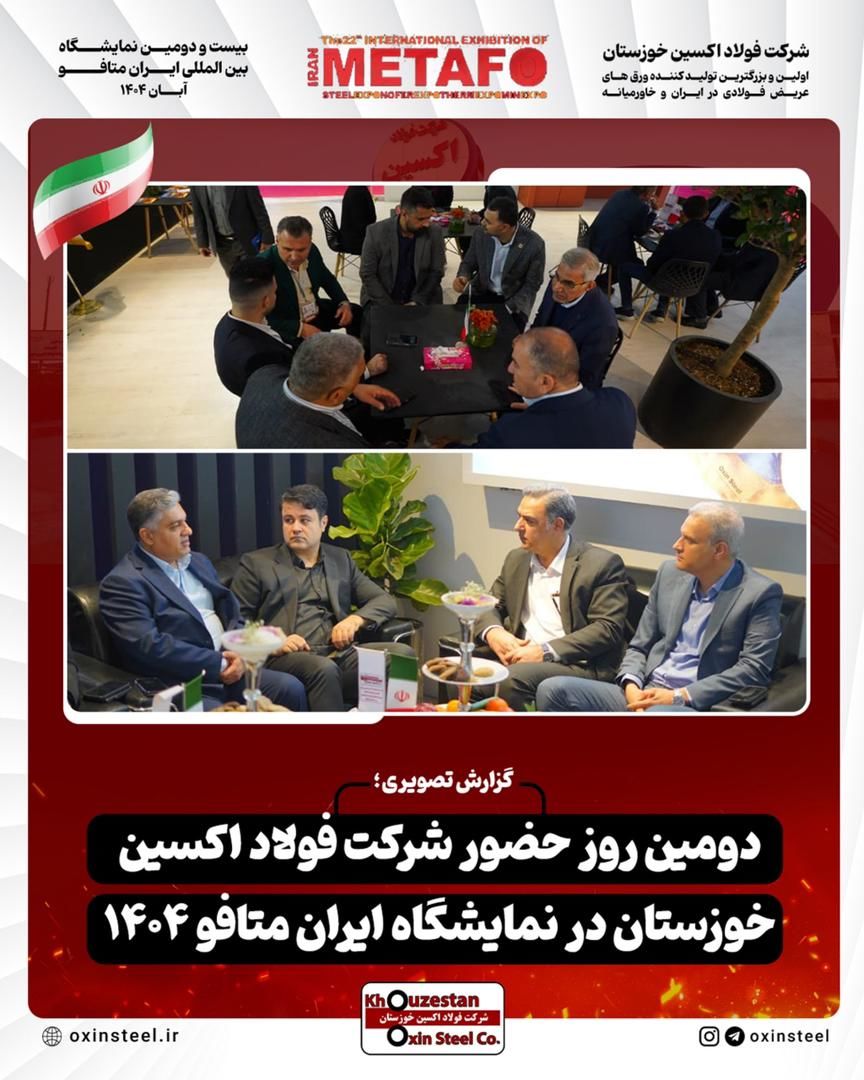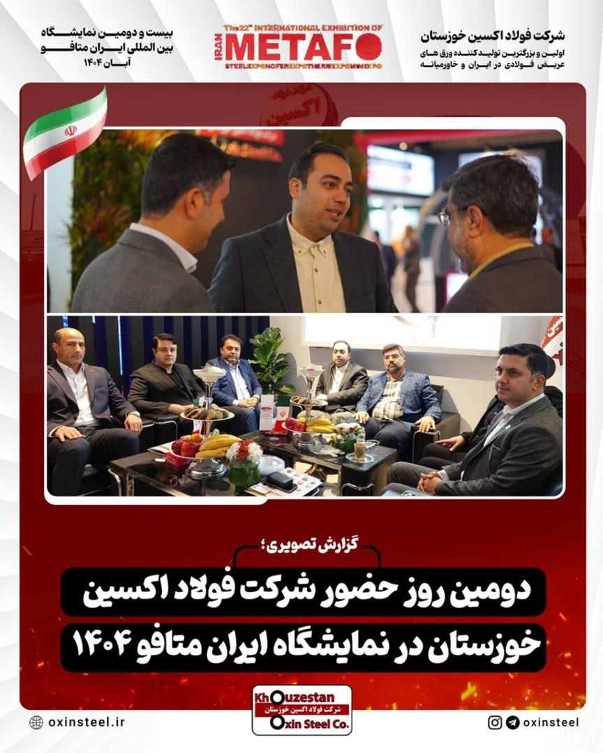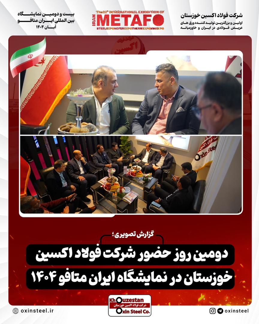دنیای معدن: گزارش تصویری از دومین روز فعالیت غرفه شرکت فولاد اکسین خوزستان در نمایشگاه ایران متافو ۱۴۰۴